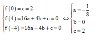 + Đồ thị hàm số y = f(x) đi qua các điểm (0; 2), (4; 0) và (– 4; 0) nên