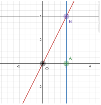 B nằm trên điểm giao giữa đồ thị hàm số y=2x và đường x=2, y tại B=4 nên B(2,4)