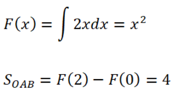 b) Giả sử F(x) là một nguyên hàm của f(x) = 2x trên đoạn [0; 2]. Tính F(2) – F(0). Từ đó hãy chứng tỏ rằng Stam giác vuông OAB = F(2) – F(0).