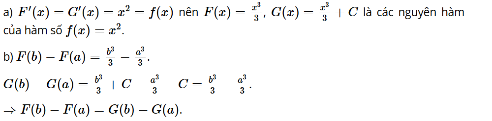 b) Chứng minh rằng F(b) – F(a) = G(b) – G(a), tức là hiệu số F(b) – F(a) không phụ thuộc việc chọn nguyên hàm.