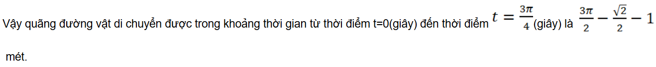 b) Quãng đường vật di chuyển được trong khoảng thời gian từ thời điểm t=0(giây) đến thời điểm