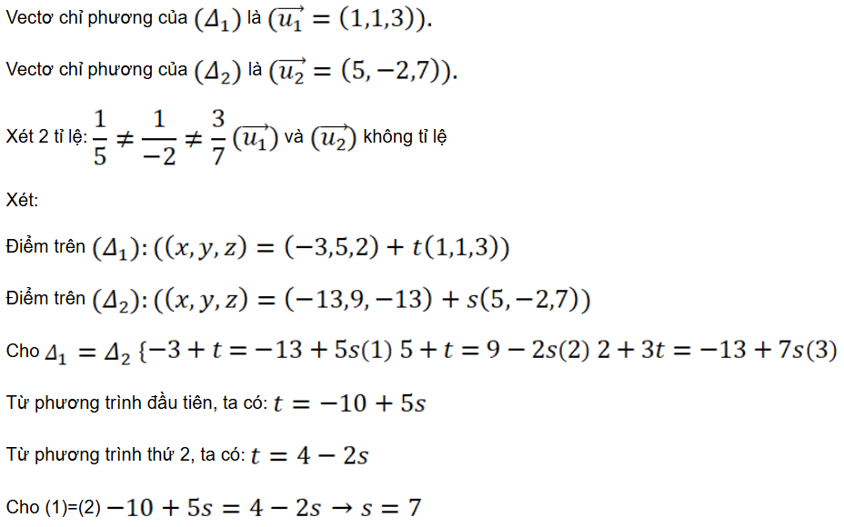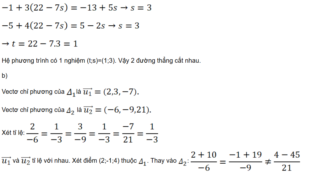 Bài tập 8: Xác định vị trí tương đối của hai đường thẳng ∆1 và ∆2 trong mỗi trường hợp sau: