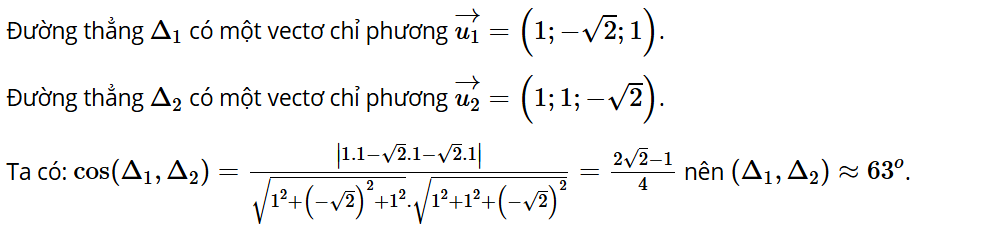 Bài tập 9: Tìm góc giữa hai đường thẳng ∆1 và ∆2, biết và (t1, t2 là tham số) (làm tròn kết quả đến hàng đơn vị của độ).