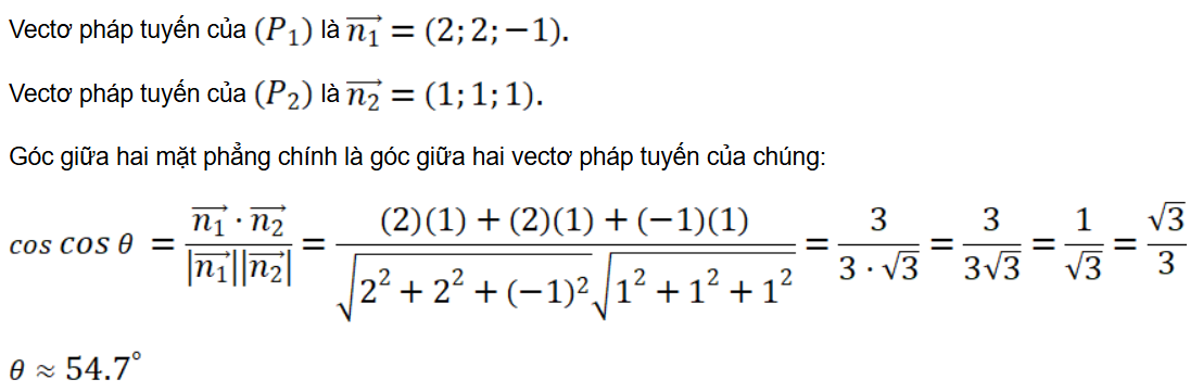 Bài tập 11: Tính góc giữa hai mặt phẳng (P1) và (P2), biết