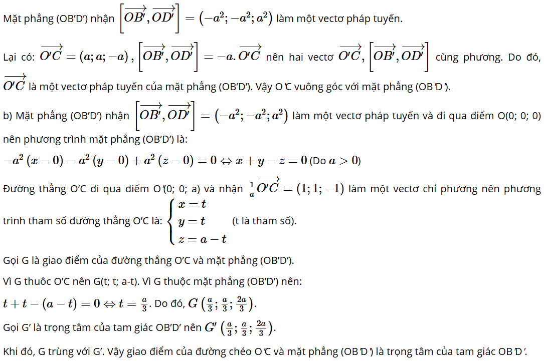b) Chứng minh rằng giao điểm của đường chéo O'C và mặt phẳng (OB'D') là trọng tâm của tam giác OB'D'.