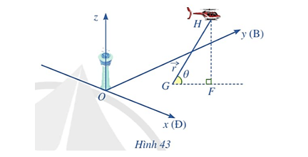 Bài tập 13: Hình 43 minh hoạ đường bay của một chiếc trực thăng H cất cánh từ một sân bay. Xét hệ trục toạ độ Oxyz có gốc toạ độ O là chân tháp điều khiển của sân bay; trục Ox là hướng đông (Ð), trục Oy là hướng bắc (B) và trục Oz là trục thẳng đứng, đơn vị trên mỗi trục là kilômét.