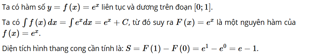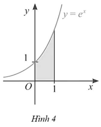 Thực hành 1: Tính diện tích hình thang cong giới hạn bởi đồ thị hàm số y = f(x) = ex, trục hoành, trục tung và đường thẳng x = 1 (Hình 4).