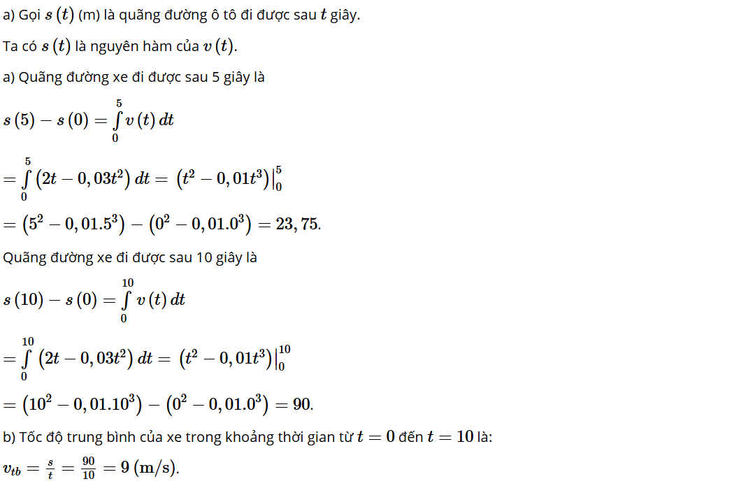 Vận dụng 1: Sau khi xuất phát, ô tô di chuyển với tốc độ , trong đó v(t) tính theo m/s, thời gian t tính theo giây với t = 0 là thời điểm xe xuất phát.
