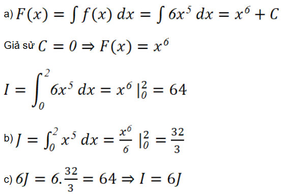 a) Tìm một nguyên hàm F(x) của hàm số f(x) = 6x5. Từ đó, tính .