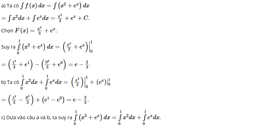 a) Tìm một nguyên hàm F(x) của hàm số f(x) = x2 + ex. Từ đó, tính .