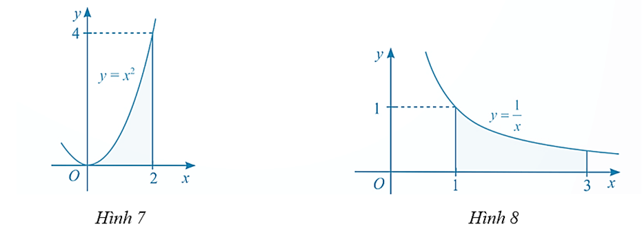 b) Đồ thị hàm số , trục hoành và hai đường thẳng x = 1, x = 3 (Hình 8).
