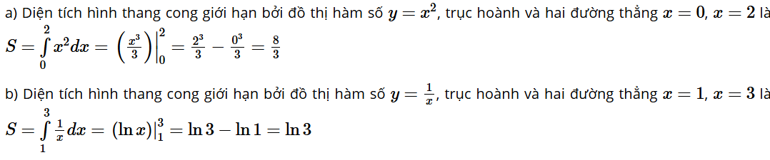 Bài tập 1: Tính diện tích hình thang cong giới hạn bởi:
