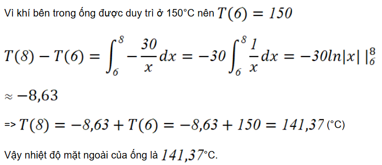 Bài tập 5: Mặt cắt ngang của một ống dẫn khí nóng là hình vành khuyên như Hình 9. Khí bên trong ống được duy trì ở 150°C. Biết rằng nhiệt độ T(°C) tại điểm A trên thành ống là hàm số của khoảng cách x (cm) từ A đến tâm của mặt cắt và .