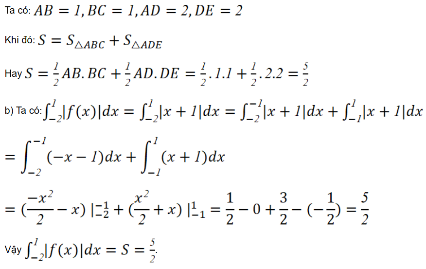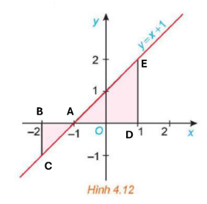 Hoạt động 1: Xét hình phẳng giới hạn bởi đường thẳng y = f(x) = x + 1, trục hoành và hai đường thẳng x = −2; x = 1 (H.4.12).