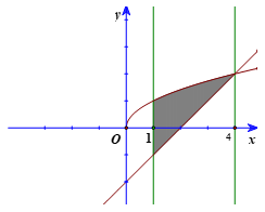 Luyện tập 2: Tính diện tích hình phẳng giới hạn bởi đồ thị của các hàm số , y = x – 2 và hai đường thẳng x = 1, x = 4.