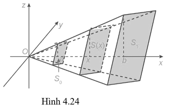 Vận dụng 2: Tính thể tích của khối chóp cụt đều có diện tích hai đáy là S0, S1 và chiều cao bằng h (H.4.24). Từ đó suy ra công thức tính thể tích khối chóp đều có diện tích đáy bằng S và chiều cao bằng h.
