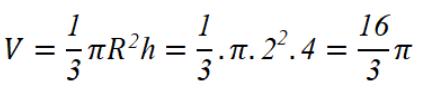 a) Khối nón có chiều cao bằng 4 và bán kính đáy bằng 2 nên có thể tích là: