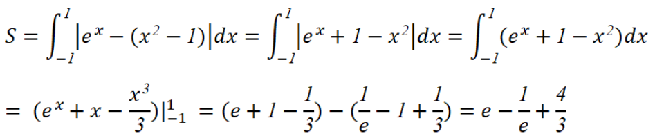a) y = ex, y = x2 – 1, x = −1, x = 1;