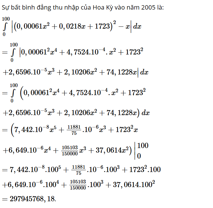 trong đó x được tính từ các gia đình nghèo nhất đến giàu có nhất (Theo R.Larson, Brief Calculus: An Applied Approach, 8th edition, Cengage Learning, 2009).