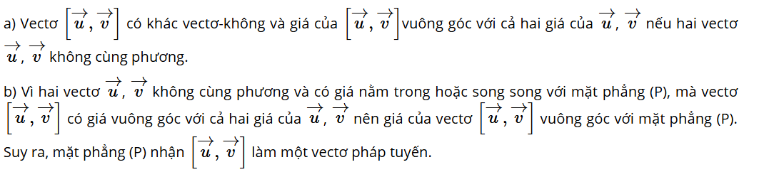 a) Vectơ có khác vectơ-không và giá của nó có vuông góc với cả hai giá của hay không?