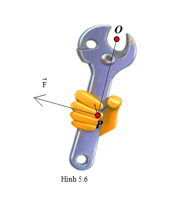 Vận dụng 1: Moment lực là một đại lượng Vật lí, thể hiện tác động gây ra sự quay quanh một điểm hoặc một trục của một vật thể. Trong không gian Oxyz, với đơn vị đo là mét, nếu tác động vào cán mỏ lết tại vị trí P một lực để vặn con ốc ở vị trí O (H.5.6) thì moment lực được tính bởi công thức