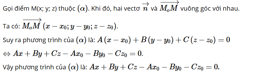 Hoạt động 5: Trong không gian Oxyz, cho mặt phẳng (α) đi qua điểm M0(x0; y0; z0) và có vectơ pháp tuyến .