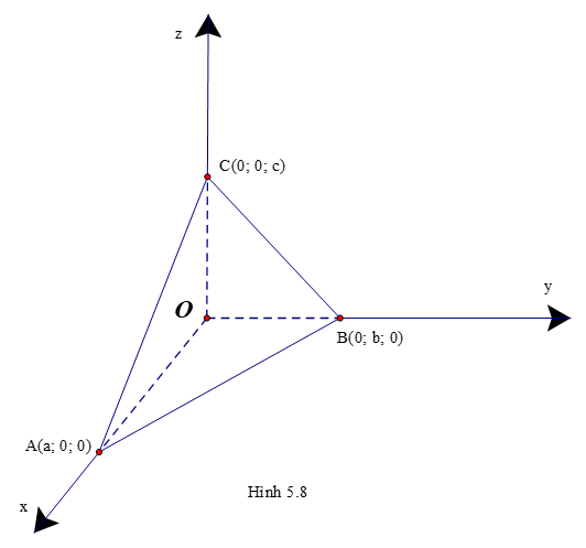 Luyện tập 8: (H.5.8) Trong không gian Oxyz, cho mặt phẳng (α) không đi qua gốc tọa độ và cắt ba trục Ox, Oy, Oz tương ứng tại các điểm A(a; 0; 0), B(0; b; 0), C(0; 0; c) (a, b, c ≠ 0).