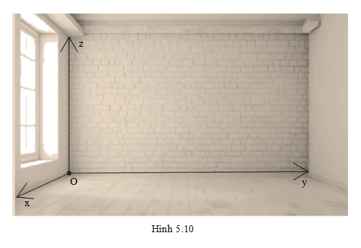 Vận dụng 3: (H.5.10) Trong không gian Oxyz, sàn của một căn phòng có dạng hình tứ giác với bốn đỉnh O(0; 0; 0), A(2; 0; 0), B(2; 3; 0), . Bốn bức tường của căn phòng đều vuông góc với sàn.