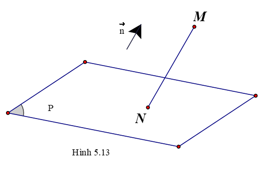 Hoạt động 10: Trong không gian Oxyz, cho điểm M(x0; y0; z0) và mặt phẳng (P): Ax + By + Cz + D = 0 có vectơ pháp tuyến . Gọi N là hình chiếu vuông góc của M trên (P) (H.5.13).