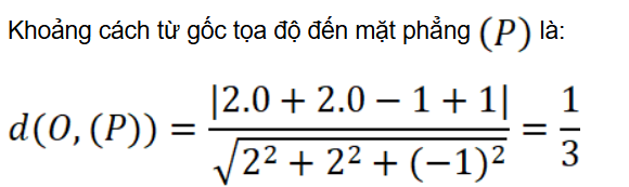 Bài 5.5: Trong không gian Oxyz, tính khoảng cách từ gốc tọa độ đến mặt phẳng (P): 2x + 2y – z + 1 = 0.