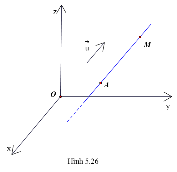 Hoạt động 2: Trong không gian Oxyz, một vật thể chuyển động với vectơ vận tốc không đổi và xuất phát từ điểm A(x0; y0; z0) (H.5.26).