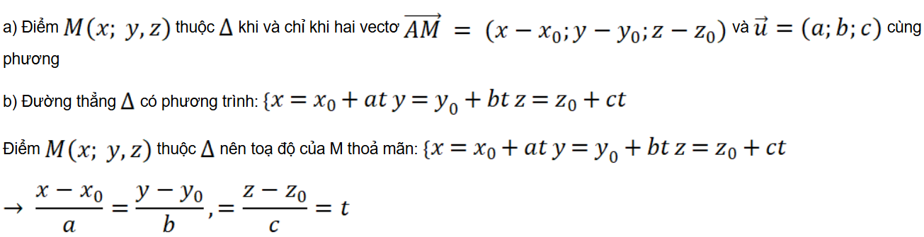 a) Điểm M(x; y; z) thuộc ∆ khi và chỉ khi hai vectơ và có mối quan hệ gì?