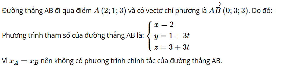 Luyện tập 6: Trong không gian Oxyz, viết phương trình đường thẳng đi qua hai điểm A(2; 1; 3) và B(2; 4; 6).