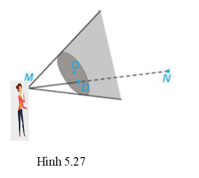Mở đầu: Trong không gian Oxyz, mắt một người quan sát ở điểm M(2; 3; −4) và vật cần quan sát đặt tại điểm N(−1; 0; 8). Một tấm bìa chắn đường truyền của ánh sáng có dạng hình tròn với tâm O(0; 0; 0), bán kính bằng 3 và đặt trong mặt phẳng Oxy. Hỏi tấm bìa có che khuất tầm nhìn của người quan sát đối với vật đặt ở điểm N hay không?