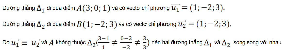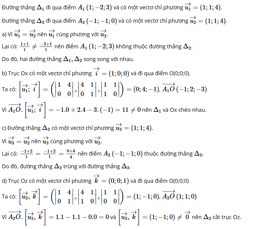 Luyện tập 8: Trong không gian Oxyz, chứng minh rằng hai đường thẳng sau song song với nhau: