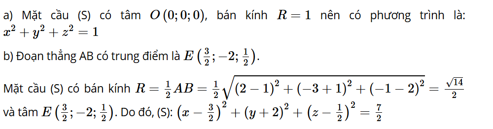 Luyện tập 2: Trong không gian Oxyz, viết phương trình mặt cầu (S) trong các trường hợp sau: