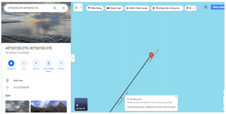 Bước 4: Trên thanh tìm kiếm nhập 45°N, 30°E và nhấn enter. Google Maps đưa đến vị trí này.