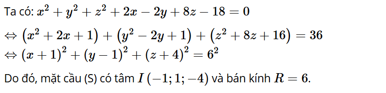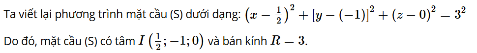 Luyện tập 4: Trong không gian Oxyz, cho mặt cầu (S) có phương trình . Xác định tâm, tính bán kính của (S).