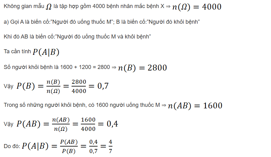 a) Uống thuốc M, biết rằng bệnh nhân đó khỏi bệnh;