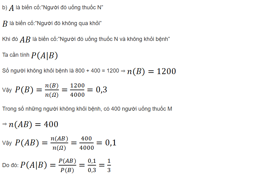 b) Uống thuốc N, biết rằng bệnh nhân đó không khỏi bệnh.