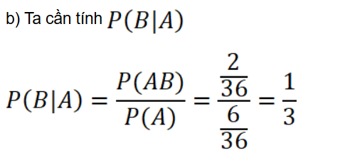 b) Có ít nhất có một con xúc xắc xuất hiện mặt 5 chấm nếu biết rằng tổng số chấm xuất hiện trên hai con xúc xắc bằng 7.