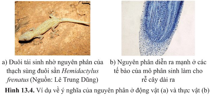 Câu hỏi 6 SGK Sinh 10 Cánh Diều Bài 13 (trang 84): Dựa vào các ví dụ nêu ở hình 13.4 cho biết nguyên phân có ý nghĩa gì đối với sinh vật.