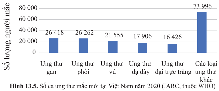 Câu hỏi 9 SGK Sinh 10 Cánh Diều Bài 13 (trang 84): Quan sát hình 13.5, nêu khái quát tình hình ung thư tại Việt Nam năm 2020 và rút ra nhận xét.
