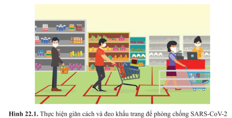 Câu hỏi 1: Vì sao giãn cách và đeo khẩu trang (hinh 22.1) lại có vai trò quan trọng trong phòng chống dịch viêm đường hô hấp cấp (COVID-19) do SARS-CoV-2 gây ra?