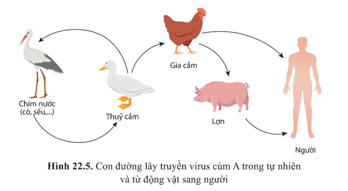 Câu hỏi 7: Quan sát hình 22.5 và cho biết chúng ta nên làm gì để hạn chế sự lây truyền virus cúm A từ động vật sang người.