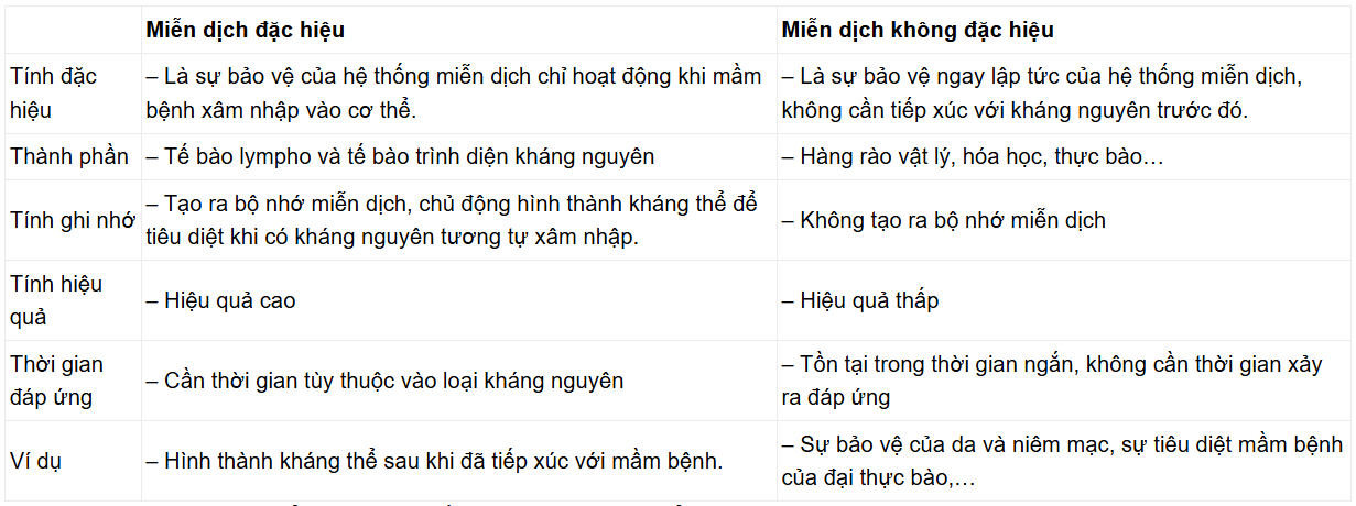 Câu hỏi 11: Phân biệt miễn dịch không đặc hiệu và miễn dịch đặc hiệu.