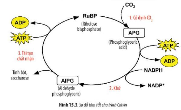 Câu hỏi 6 SGK Sinh 10 Chân trời sáng tạo Bài 15 (trang 73): Quan sát Hình 15.3, hãy cho biết chu trình Calvin gồm mấy giai đoạn. Đó là những giai đoạn nào? Mô tả diễn biến trong mỗi giai đoạn đó.