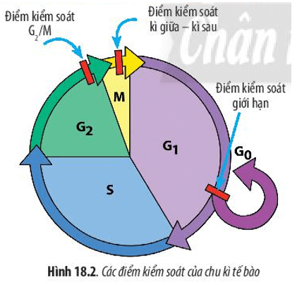 – Chu kì tế bào được kiểm soát thông qua các điểm kiểm soát. Có 3 điểm kiểm soát chính là điểm kiểm soát G1, điểm kiểm soát G2/M và điểm kiểm soát chuyển tiếp kì giữa – kì sau.