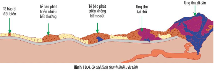 Câu hỏi 8 SGK Sinh 10 Chân trời sáng tạo Bài 18 (trang 87): Hãy quan sát Hình 18.4 và cho biết cơ chế hình thành khối u ác tính.