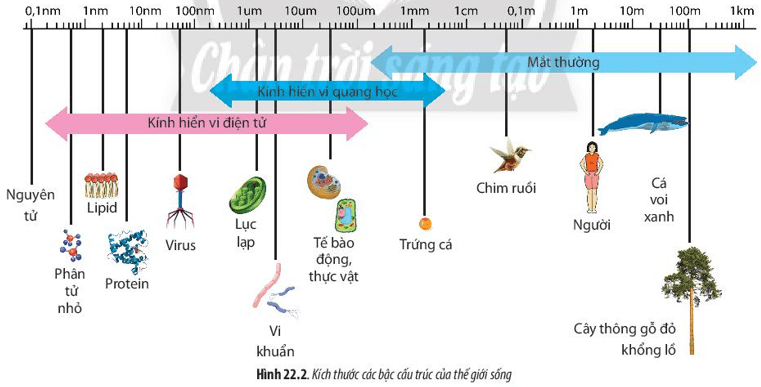 Câu hỏi 2 SGK Sinh 10 Chân trời sáng tạo Bài 22 (trang 106): Quan sát Hình 22.2 và cho biết vi sinh vật có kích thước như thế nào?